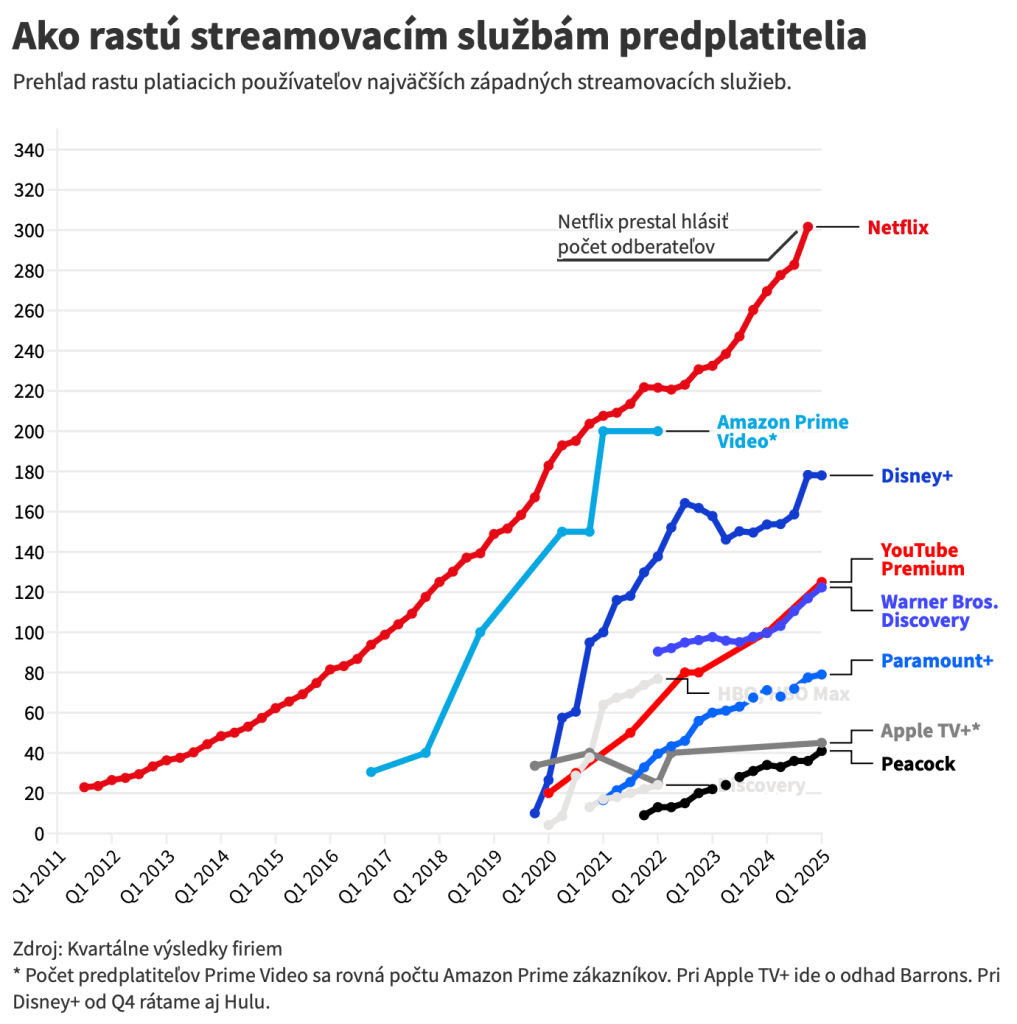 Keďže Netflix už nehlási stav predplatiteľov, tak po Q2 vyzerá stav predplatiteľov streamovacích služieb takto:
